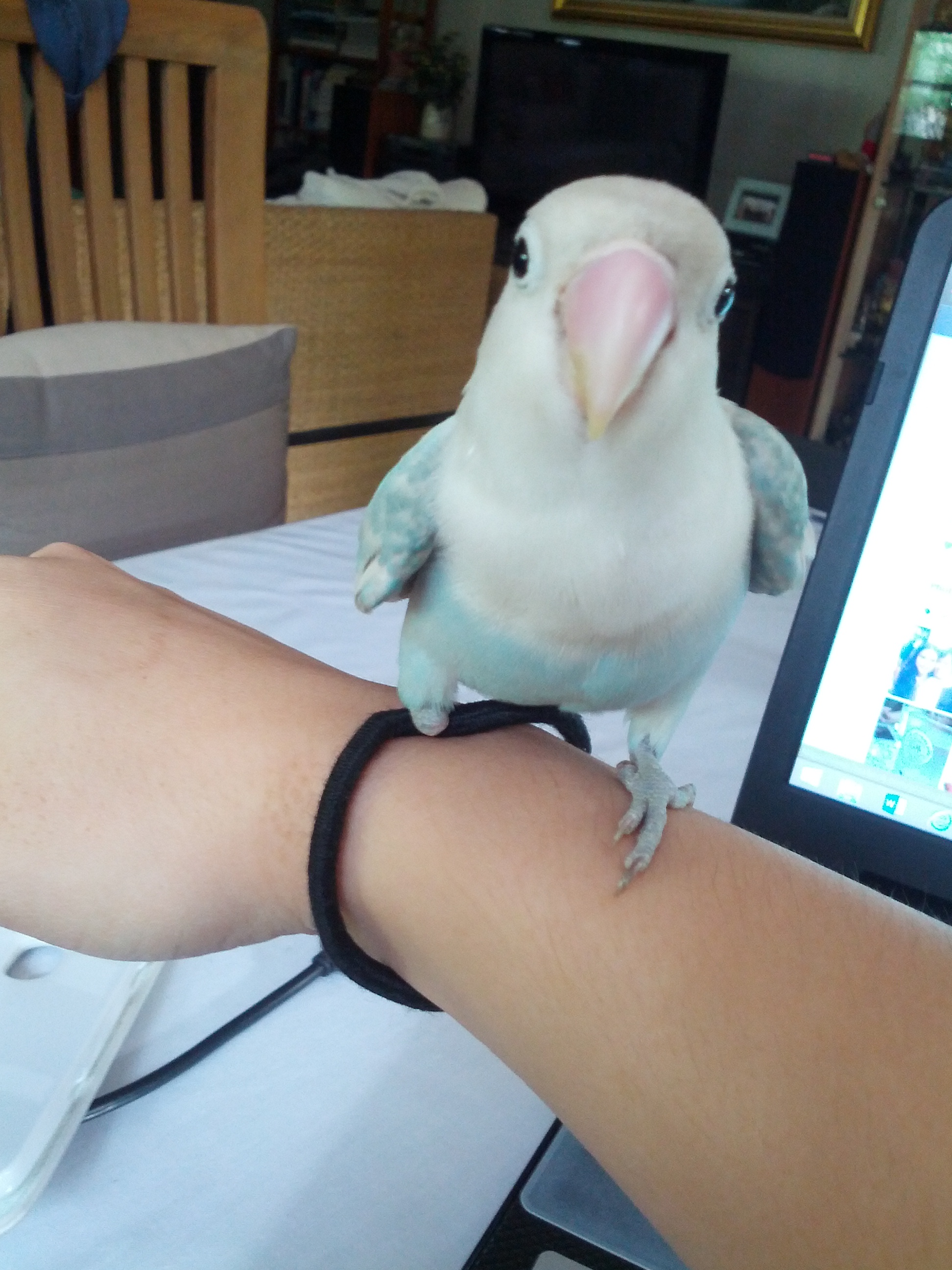 In recent months, though, I’ve been spending more and more time at a friend’s. Now. Her house is full of animals. Literally. More specifically, dogs, lovebirds, and chicken. Here’s one of the birds: