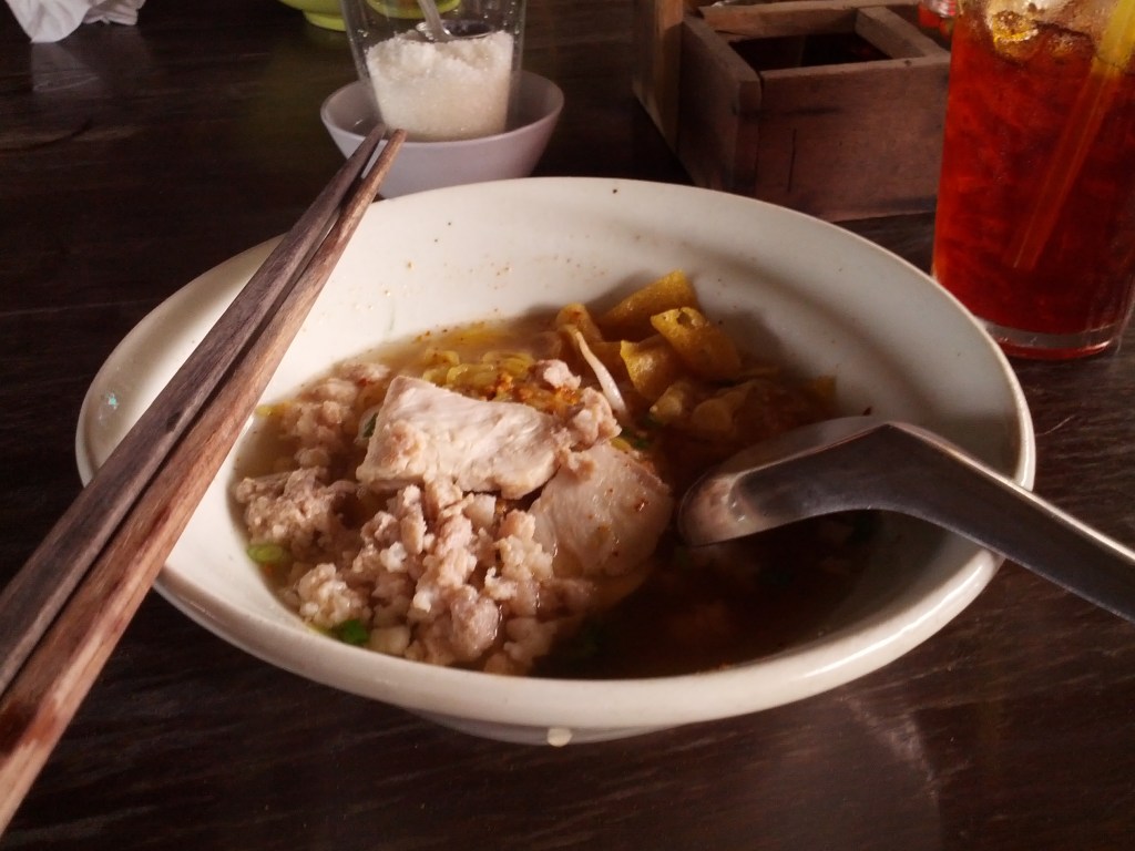 What does one write in a review of a noodle place? I don’t think there’s much to be written. It’s Tom Yam noodles with minced pork and Tam-lueng (a kind of vegetables I’m failing to find the English word for). I like the taste. Evidently so given I’ve been going there for near on ten years.