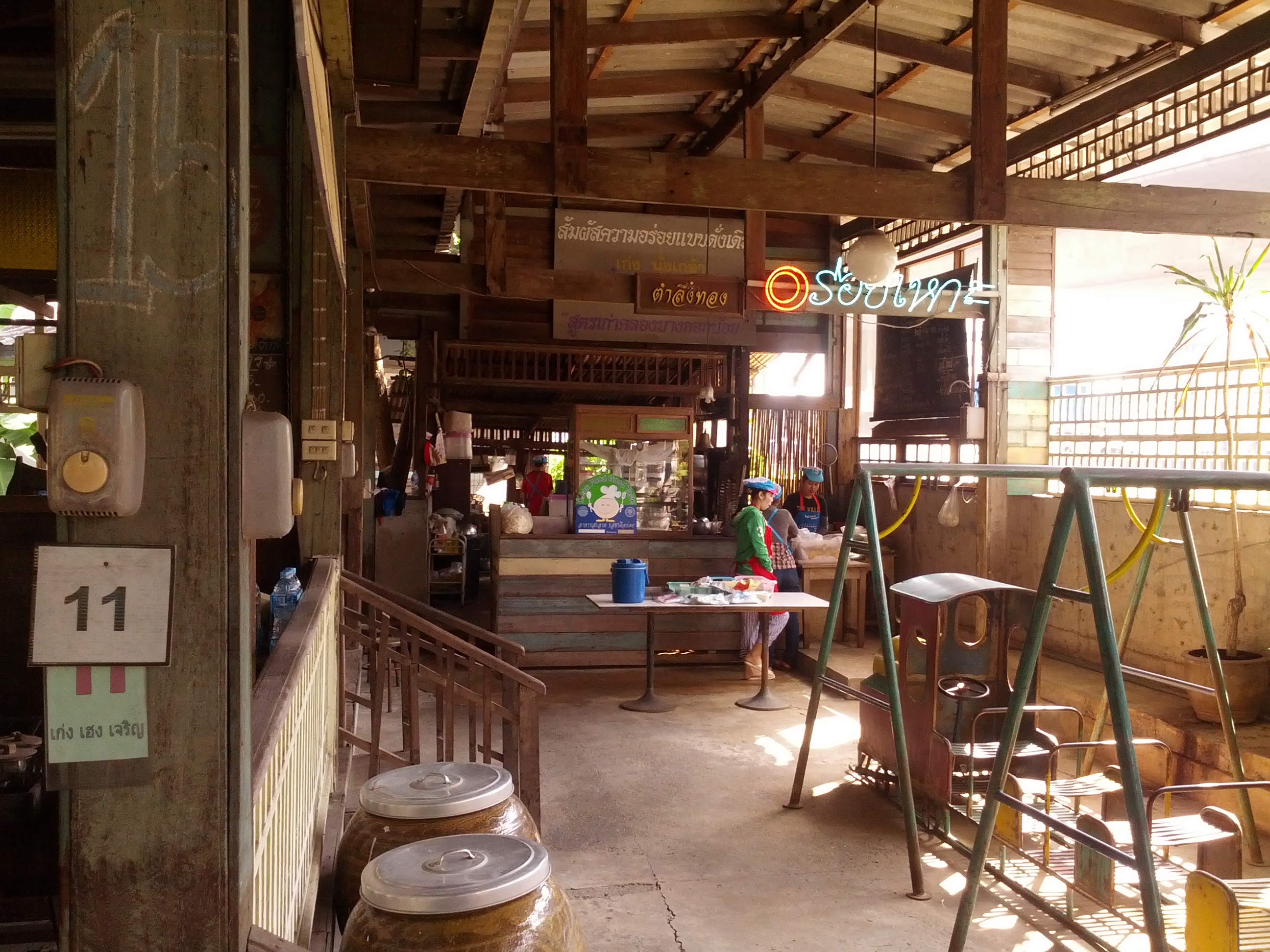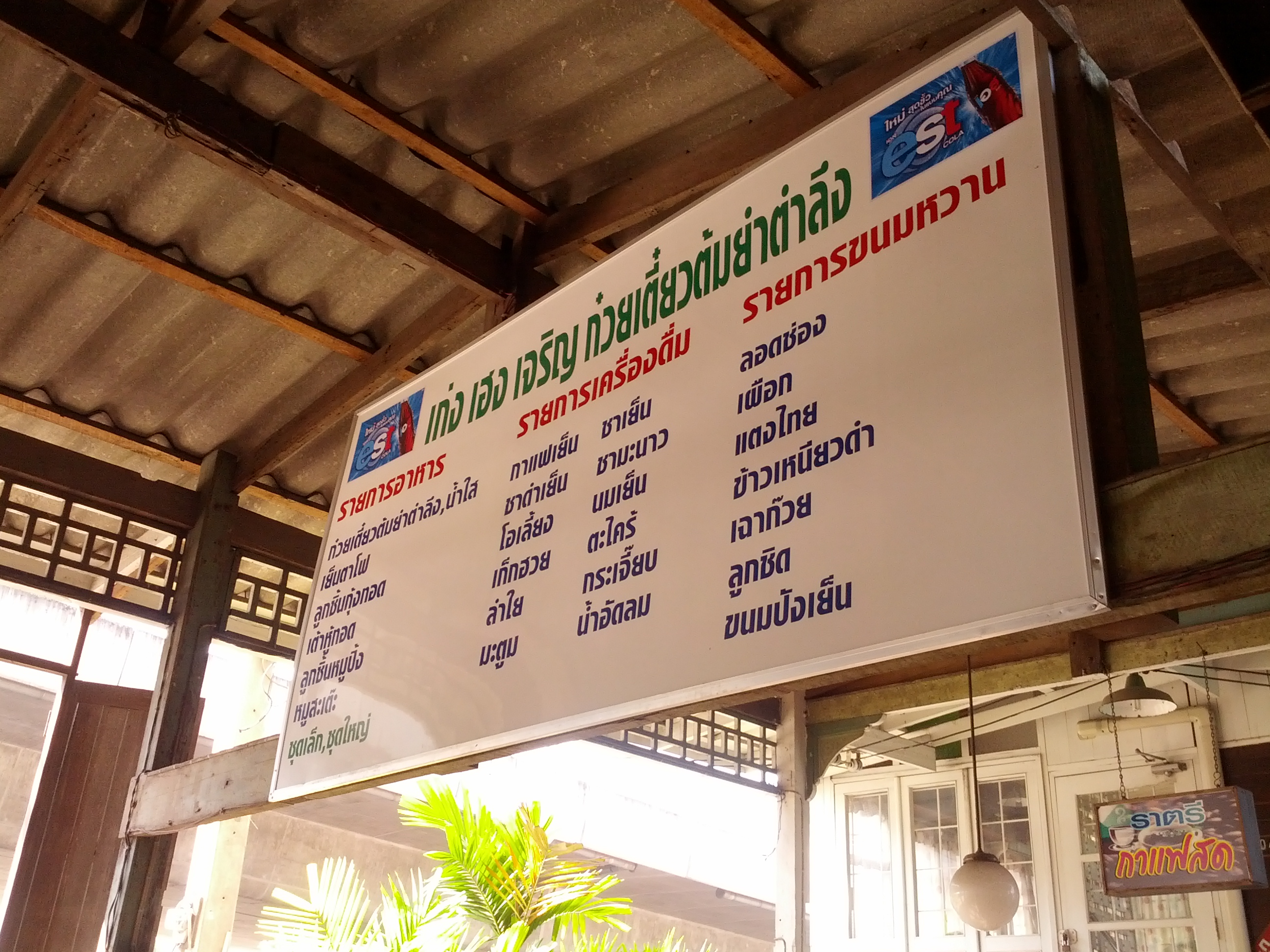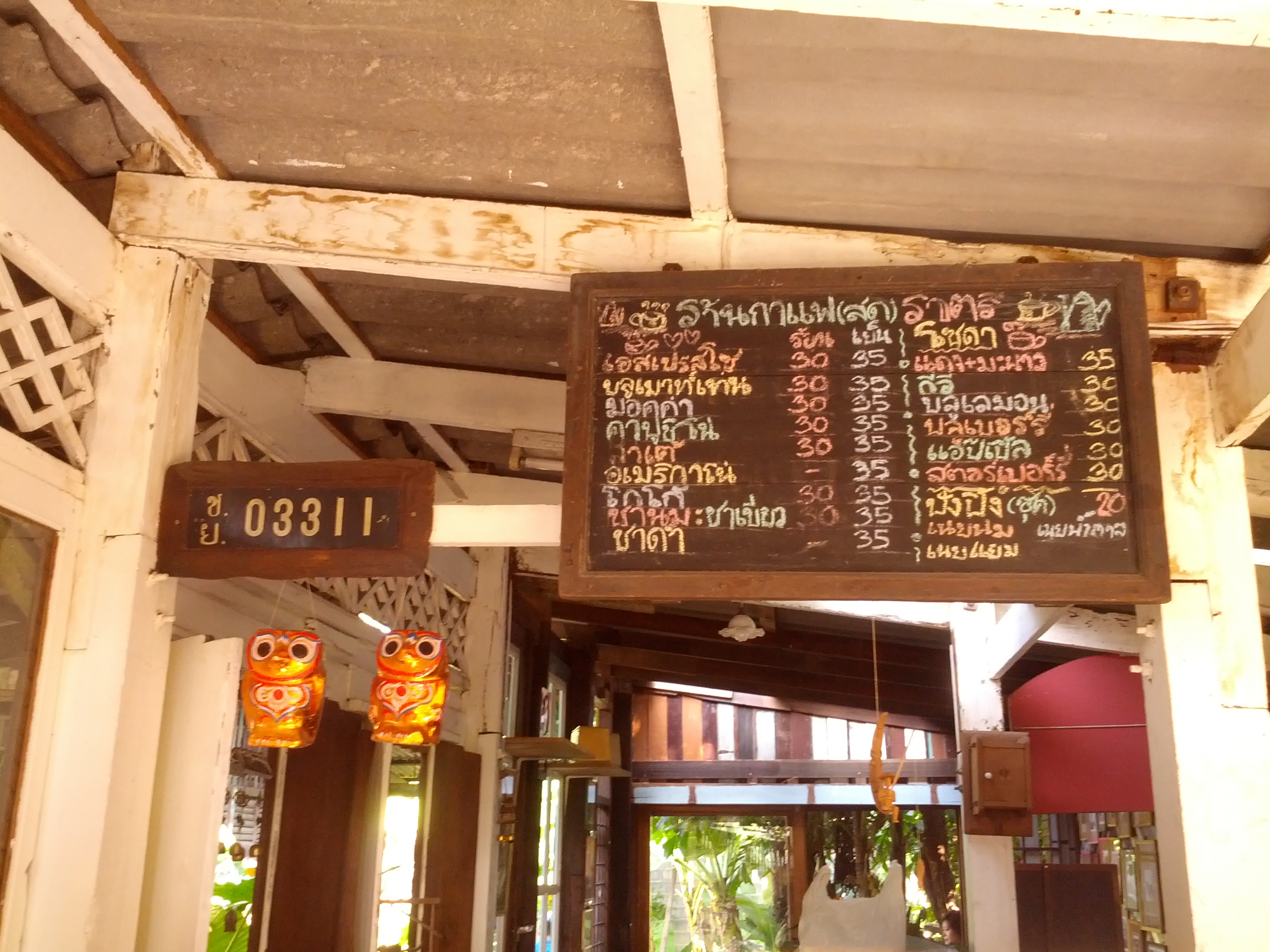 Right next to the noodle place is an old-style coffee shop – Ratree Coffee. Opens seven days a week. They close one day every month – usually a Monday; they put up a sign so you know when they’ll be closed in a given month. They open through holidays – New Years included.
